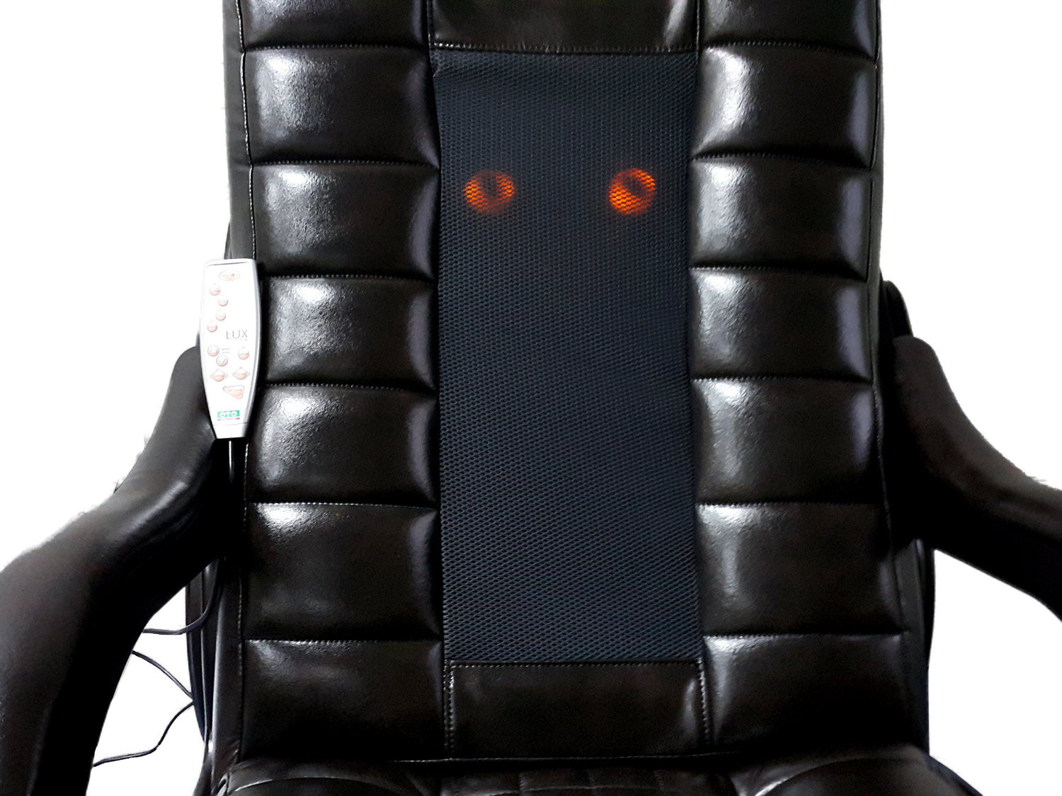 кармане спинки кресла. Пульт управления имеет понятный кнопочный интерфейс на русском языке, с помощью которого пользователь легко может изменять функции массажа.